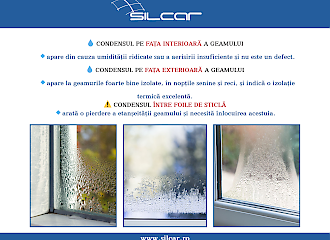 Apariția condensului pe această față nu este un defect al geamului, ci o consecință a umidității interioare.