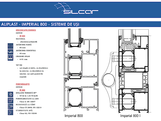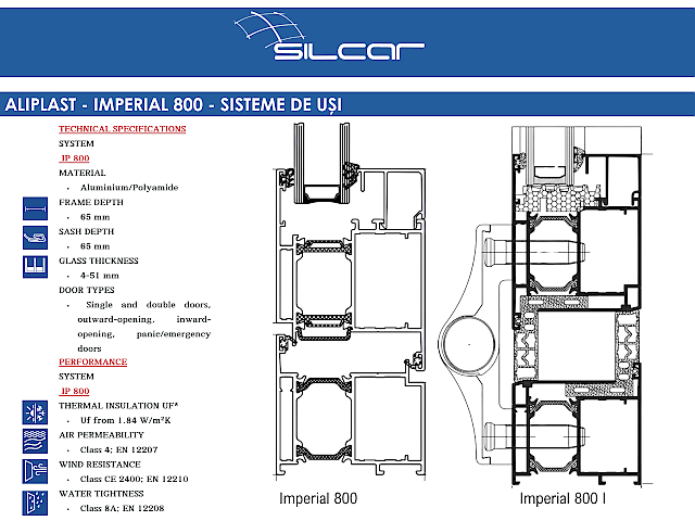 | IP 800 | Uf da 1,84 W/m2K | Classe 4; EN 12207 | Classe CE 2400; EN 12210 | Classe 8A; EN 12208 |