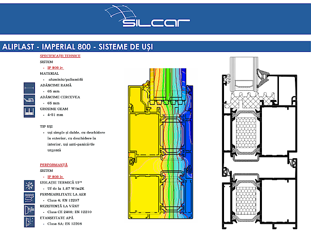 ✔ Il sistema è disponibile anche nella versione con isolamento termico migliorato (IP800i, IP800i+), realizzato applicando inserti termici speciali inseriti tra gli isolatori e attorno al vetro; una soluzione che migliora l'isolamento del profilo di 0,2 – 0,5 W/m2K.