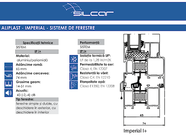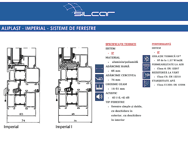 | IP | Alluminio/polimide | 65 mm | 74 mm | 14-51 mm | 43 (-2,-4) dB | Finestre singole e doppie, con apertura verso l'esterno, con apertura verso l'interno |