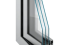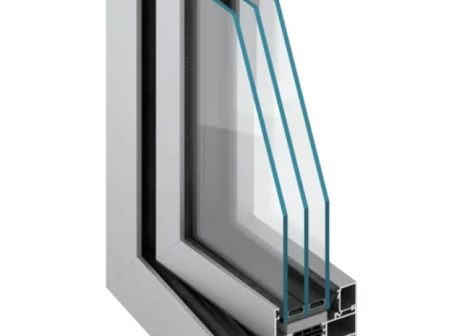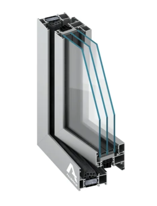 Ampia gamma di vetrature con pacchetti di vetro a 2 o 3 lastre, con spessori fino a 63 mm per finestre e fino a 54 mm per porte, che permette l'uso di tutti i tipi di vetro, inclusi vetri acustici o antieffrazione.