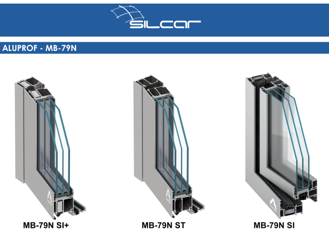 Oltre alla versione economica MB-79N E, con guarnizione centrale mono-componente per le finestre, e alla versione MB-79N ST con guarnizione centrale a due componenti, il sistema offre anche la variante MB-79N SI con il miglior isolamento termico. Questa versione è dotata di profili con inserti isolanti e una guarnizione centrale a due componenti.