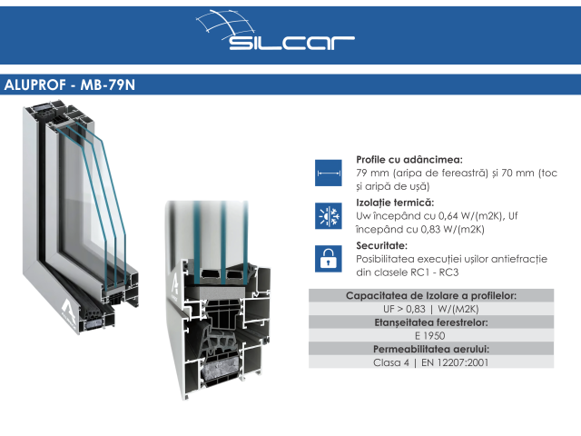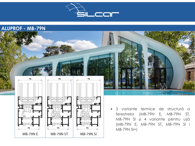 3 varianti di struttura termica per finestre (MB-79N E, MB-79N ST, MB-79N SI) e 4 varianti per porte (MB-79N E, MB-79N ST, MB-79N SI, e MB-79N SI+).