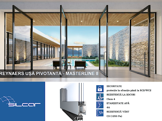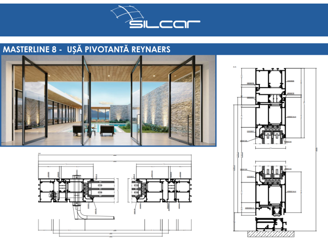 Le porte pivotanti MasterLine 8 in alluminio combinano un design moderno con prestazioni eccezionali in termini di sicurezza, isolamento termico e robustezza strutturale. Rappresentano un'opzione ideale per le ingressi principali, disponibili in versioni standard, in formato XL di grandi dimensioni, nonché in una variante modulare con pannelli multipli interconnessi per un effetto architettonico spettacolare.