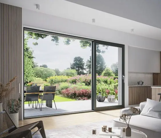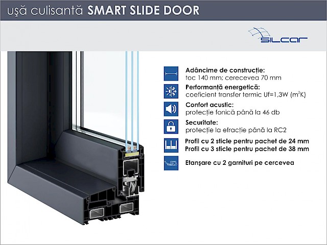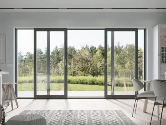 Le porte scorrevoli Smart-Slide offrono una nuova soluzione per l'industria delle porte/finestra scorrevoli e sono progettate per diventare un'alternativa attraente alle porte PSK (porte oscillanti e scorrevoli con scorrimento parallelo) e alle altre porte scorrevoli. Sono una soluzione eccellente sia per le abitazioni residenziali che per gli edifici pubblici, dove si richiede un funzionamento semplice e affidabilità dalle porte scorrevoli. Una combinazione ben pensata di soluzioni tecniche significa che l'opzione Smart-Slide ottiene ottimi risultati nei test di isolamento, resistenza al vento e impermeabilità. Tutto ciò grazie alle guarnizioni del battente che si adattano perfettamente e vengono premute trasversalmente dal telaio lungo l'intero perimetro, ruotando la maniglia. I punti di chiusura si uniscono nell'area della traversa, assicurando una costruzione solida. vedi i dettagli