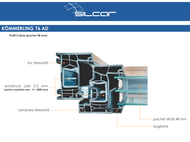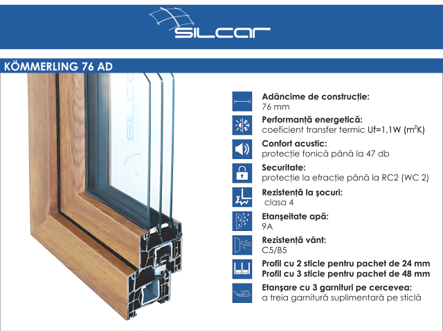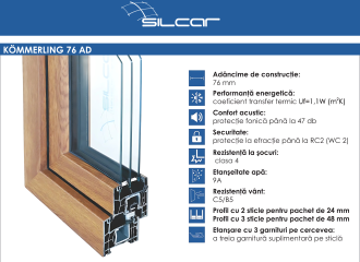 Sistema KÖMMERLING 76, con una profondità costruttiva di 76 mm, è il miglior sistema di profili della sua categoria, con un coefficiente di trasmittanza termica Uf = 1,1 W/m²K.