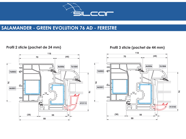 ✔ Profilo con 3 vetri per pacchetto di 44 mm vedi i dettagli