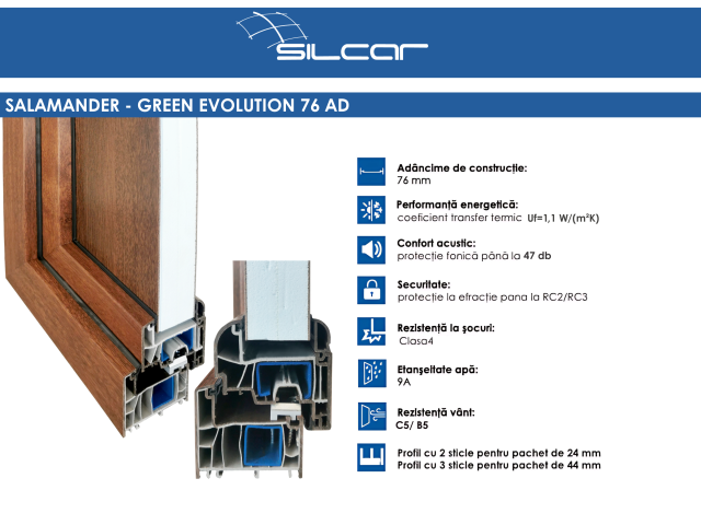Il sistema è realizzato con materiali privi di ftalati e plastificanti, offrendo maggiore durabilità e resistenza ai raggi UV. Il design moderno con struttura a più camere consente la realizzazione di finestre e porte ad alta efficienza energetica, contribuendo a ridurre il rumore e ad aumentare il comfort termico. Inoltre, consente la realizzazione di vetrate di grandi dimensioni, rispondendo sia alle esigenze estetiche che a quelle statiche.