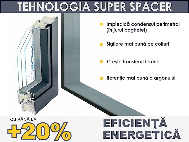 ✔ Eficienta sporita: Bagheta Super Spacer este cu aproximativ 10% mai eficienta decat bagheta tip Thermix, contribuind la o izolatie termica imbunatatita.